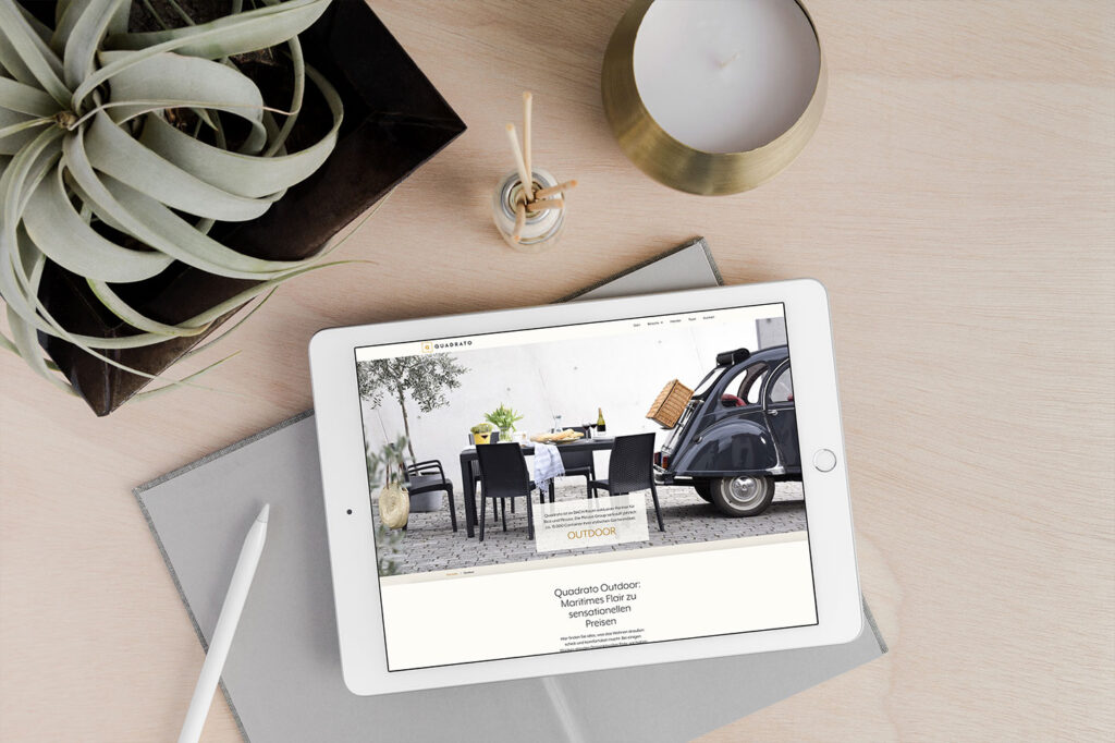 Nach getaner Vorarbeit in Sachen Markenbildung haben wir eine neue Quadrato Website entworfen, betextet und technisch umgesetzt. Als alles stand und wir bei Heldenstreich schon traurig waren, dass wir uns nicht länger mit schönen Möbeln befassen dürfen, hat Quadrato kurzerhand einen neuen Geschäftsbereich „aufgemacht“ – nämlich Outdoor-Möbel. Die haben wir dann fotografiert (bei 6 Grad und Nieselregen, das ganze Drama im Blog zu lesen >>) und gefilmt und all das auf die Website mit dazugepackt.