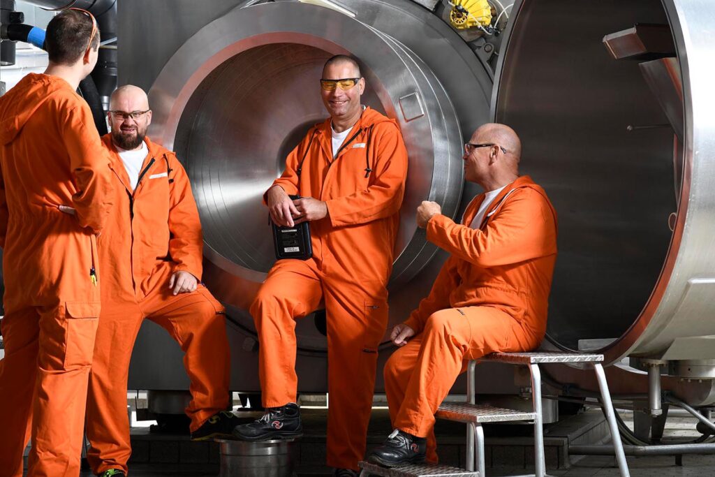 Wir kannten das Unternehmen zwar schon vom vorherigen Employer Branding-Prozess gut, doch hier sind wir nochmal viel tiefer in die Materie eingetaucht, haben viele Interviews mit den Wissenschaftlern und Ingenieuren geführt. Und wir haben fotografiert, fotografiert, fotografiert. Was in den vielen hochreinen Bereichen nicht gerade einfach war. Wie fotografiert man eine 10.000 Grad-Flamme? Wie setzt man eine Kaltmahlanlage in Szene? Wie belichtet man, wenn überall Edelstahlflächen blitzen und blinken? Wie lässt man Menschen, die in Vollschutzanzügen stecken, doch persönlich wirken? Eine Riesenherausforderung.